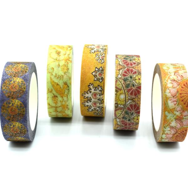 | Foil washi tape | 15mm*10m | CMYK+Foil | 1 roll/shrink+2 round stickers | Available |